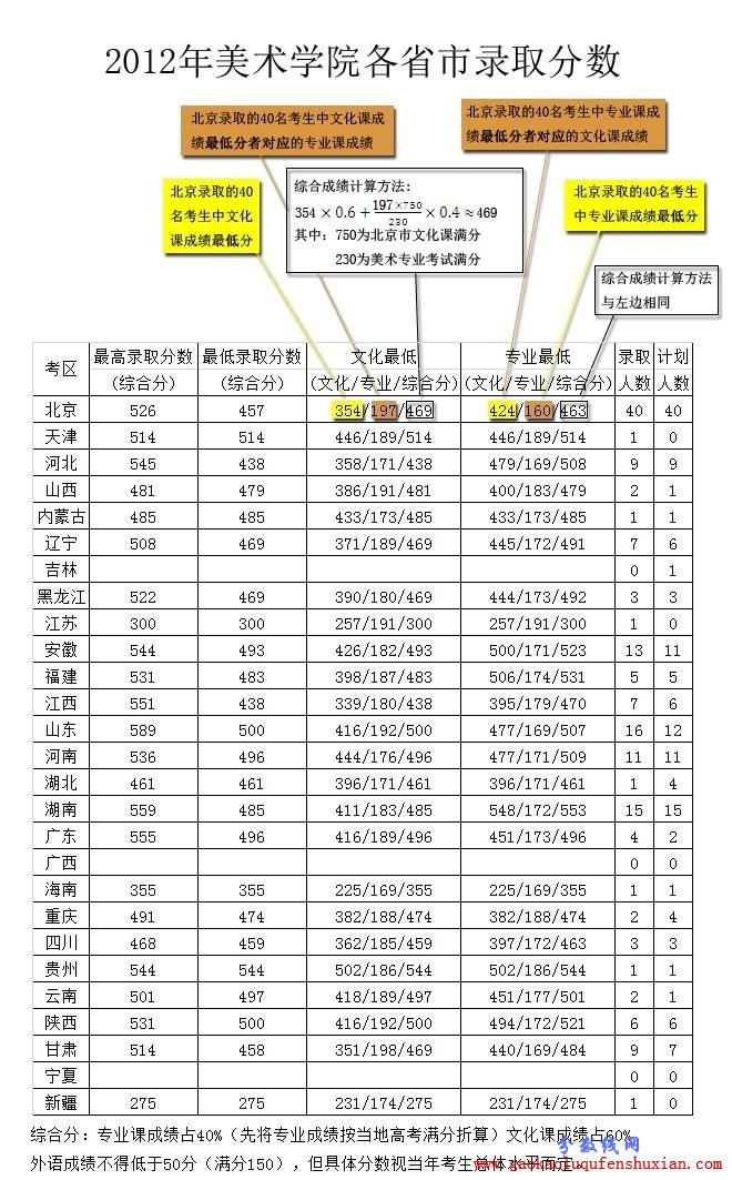 首都师范大学2012年艺术类录取分数