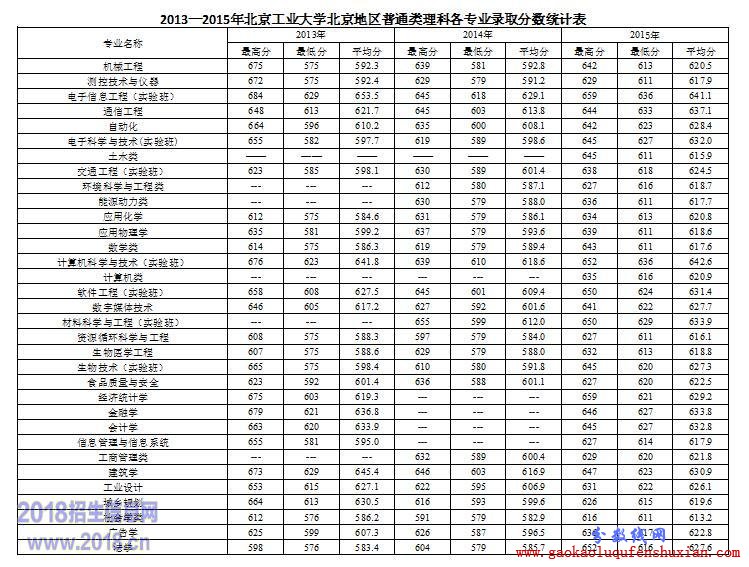 北京工业大学2013-2015年录取分数统计(北京生源)