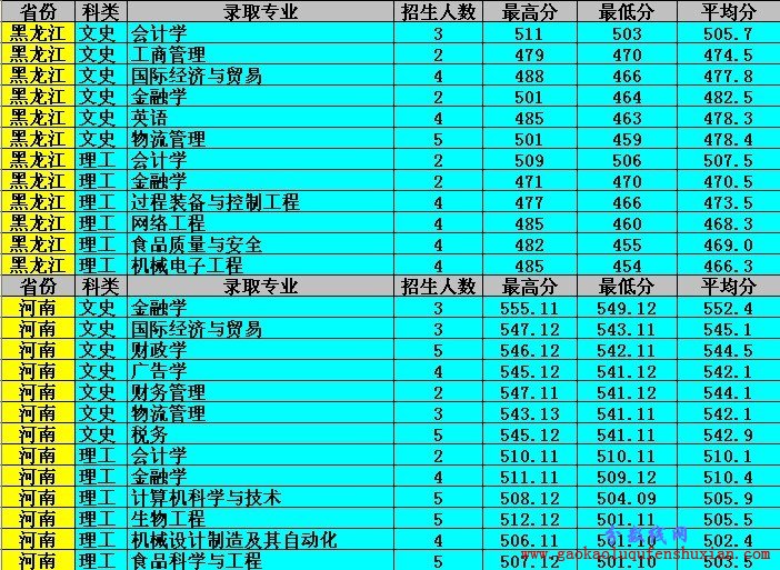 吉林工商学院2012年省外本科各专业录取分数线(8)