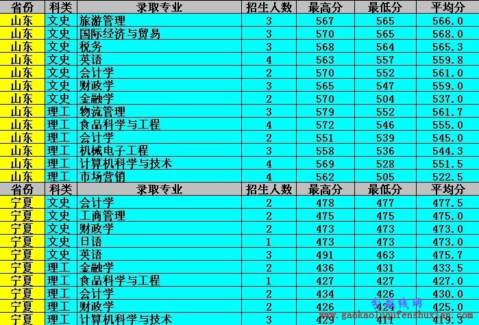 吉林工商学院2012年省外本科各专业录取分数线