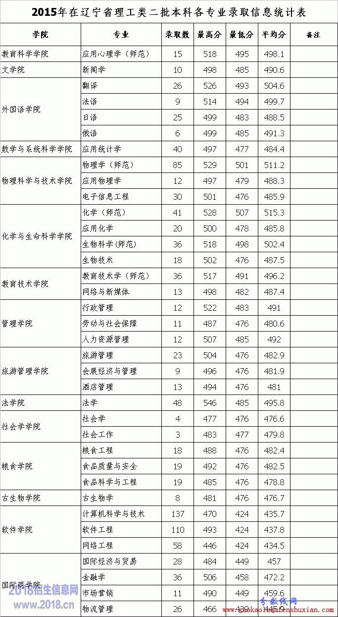 沈阳师范大学2015年在辽宁省二批本科理工类录取分数统计表
