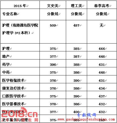 以下是2015潍坊护理职业学院高考分数线各省情况统计,仅供参考: