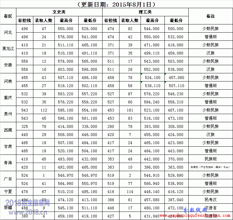西南民族大学2015年普通本科录取情况统计表(分计划性质)