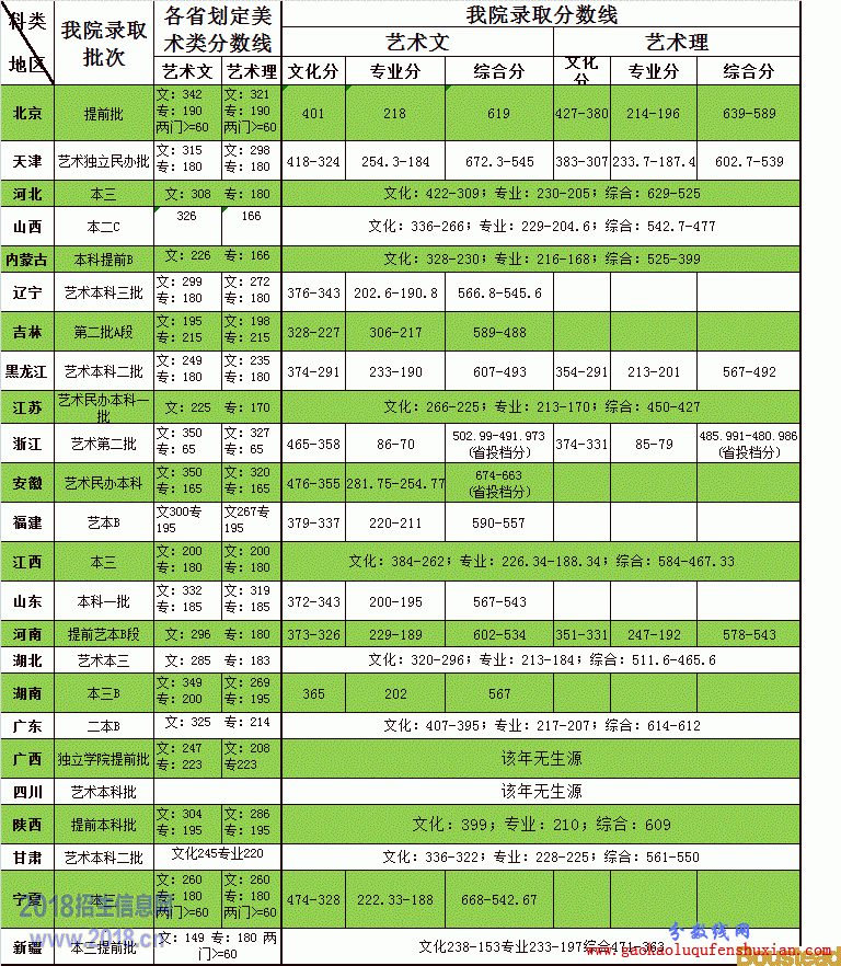 天津商业大学宝德学院2015年艺术类各省划定及我院录取分数线